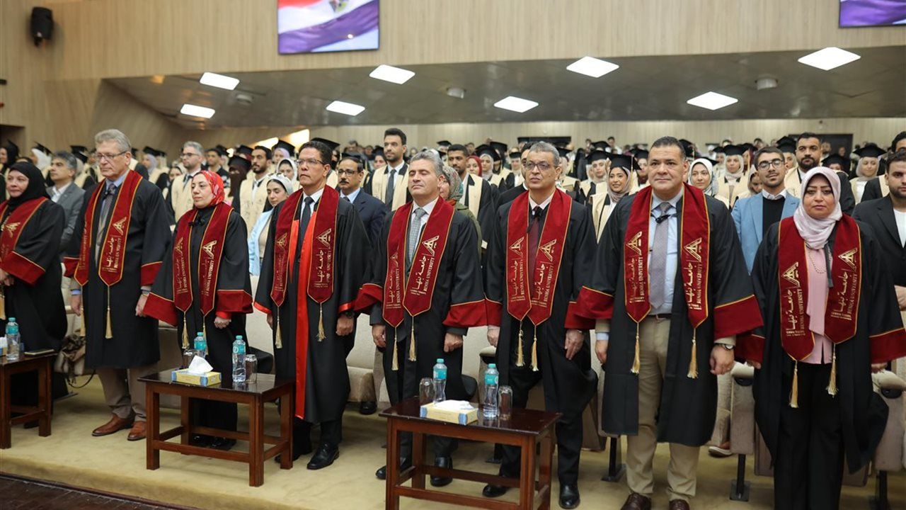 وأضاف " الجيزاوي " للخريجين أنتم اليوم تحملون رسالة عظيمة، رسالة إنسانية قبل أن تكون مهنية، فمهنة الطب هي مهنة الرحمة والعطاء، وهي أمانة في أعناقكم تجاه مرضاكم ومجتمعكم ووطنكم، أوصيكم أن تكونوا قدوة في أخلاقكم، متميزين في علمكم، مخلصين في عملكم، وأن تجعلوا من كل يوم فرصة جديدة لخدمة الإنسان والارتقاء بالعلم.
