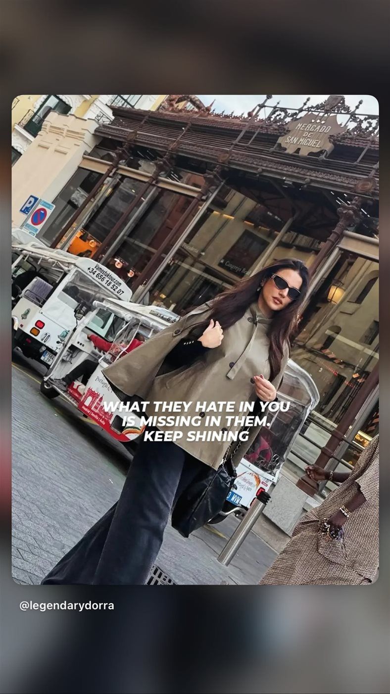 وعلّقت الفنانة التونسية درة على الصورة بعبارة: «ما يكرهونه فيك يفتقدونه فيهم.. استمري في التألق».
