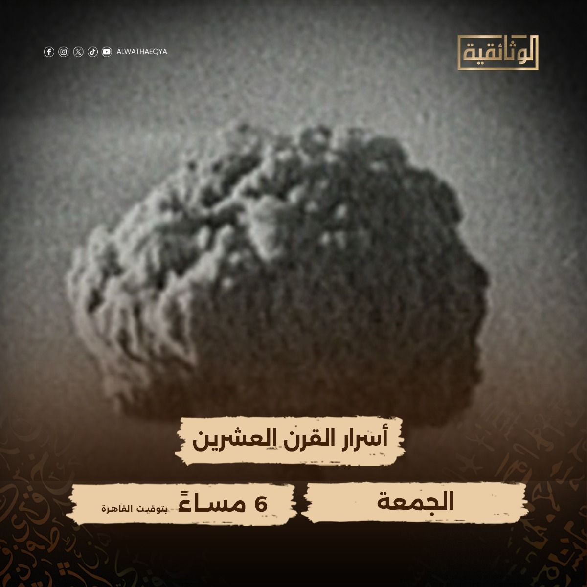تعرض قناة "الوثائقية"، سلسلة وثائقية بعنوان "أسرار القرن العشرين"، تكشف كثيرًا من أسرار العالم التى ظلت مخفيَّة عقودًا طويلة مضت، وذلك اليوم الجمعة في تمام الساعة السادسة مساءً.