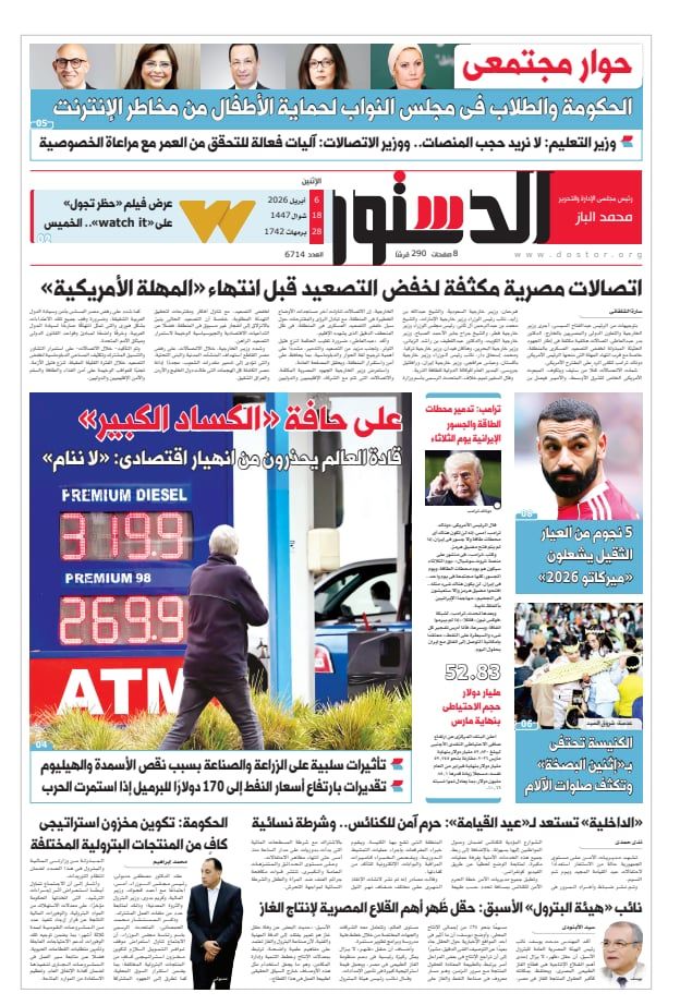 تنشر جريدة «الدستور» في عددها الصادر غدًا الإثنين مجموعة من الملفات السياسية والاقتصادية والرياضية والثقافية، التي ترصد المشهد الداخلي والتطورات الإقليمية والدولية، مع تسليط الضوء على انعكاساتها على السوق المحلي والحياة اليومية للمواطنين.