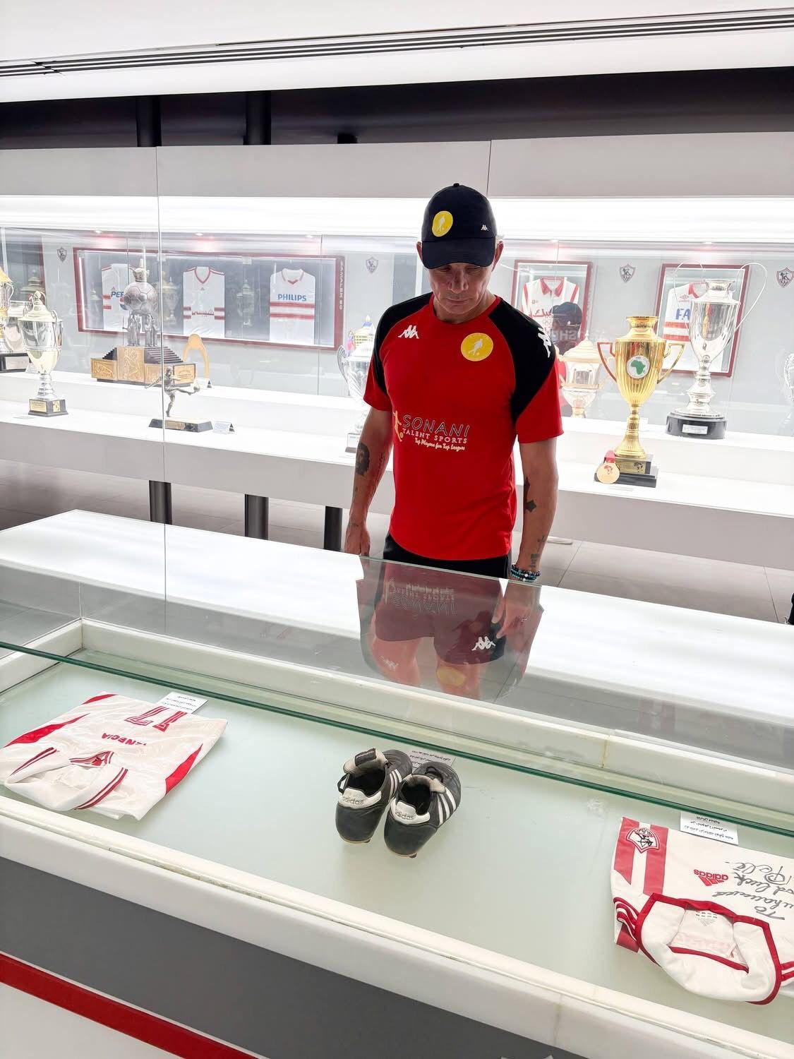 مارك فيش نجم منتخب جنوب إفريقيا يزو متحف نادي الزمالك بصحبة حازم إمام