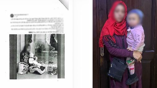 بالفحص أمكن تحديد وضبط السيدة والطفلة الظاهرتان بالصورة وبمواجهتها أقرت بأن الطفلة ابنتها وأنها تستغلها في أعمال التسول واستجداء المارة وأنها قامت بالتعدي عليها بالضرب بقصد تأديبها.