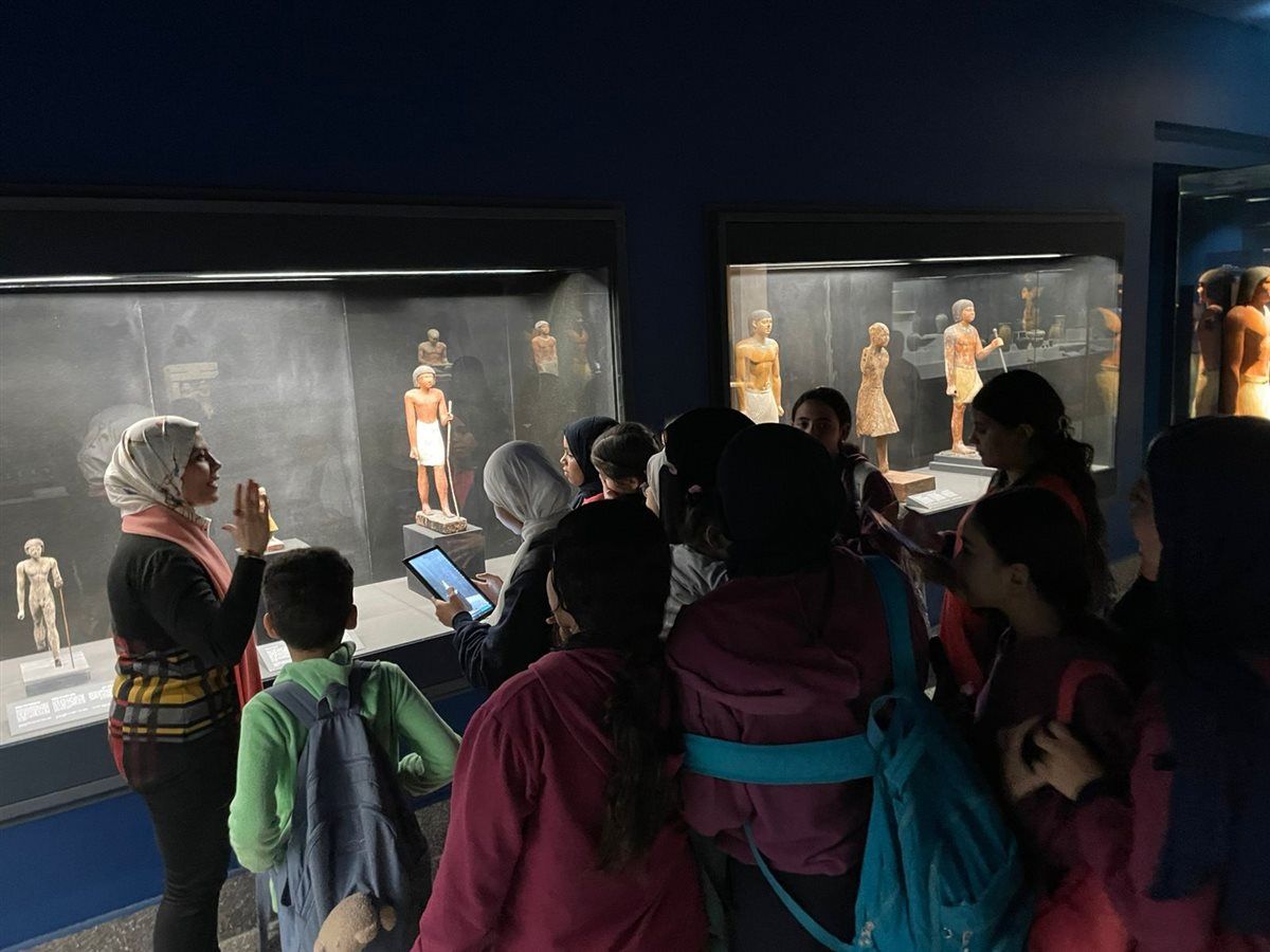 كما شاهد الأطفال تمثالا لإيمحتب، وبعض الأواني، ونماذج لمنحوتات خشبية وحجرية، إلى جانب التوابيت والعناصر المعمارية المتنوعة، وذلك خلال جولتهم في قاعات المتحف مع الآثارية عبير عبد القادر.