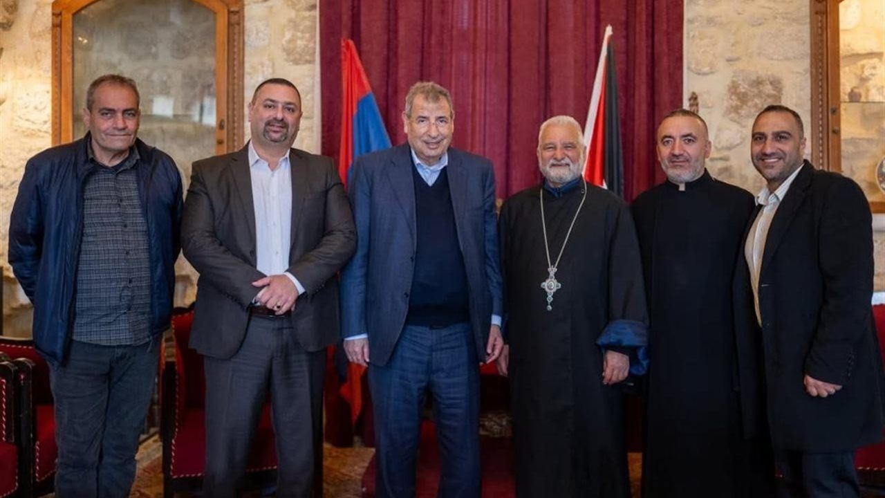 وجرى خلال اللقاء بحث الترتيبات الخاصة بالكنيسة الأرمنية لضمان إقامة الطقوس والشعائر الدينية وفق تقاليدها العريقة، مع التأكيد على أهمية صون حضورها الروحي والتاريخي في أرض المسيح له المجد، ودورها الأصيل كجزء لا يتجزأ من النسيج الوطني الفلسطيني.