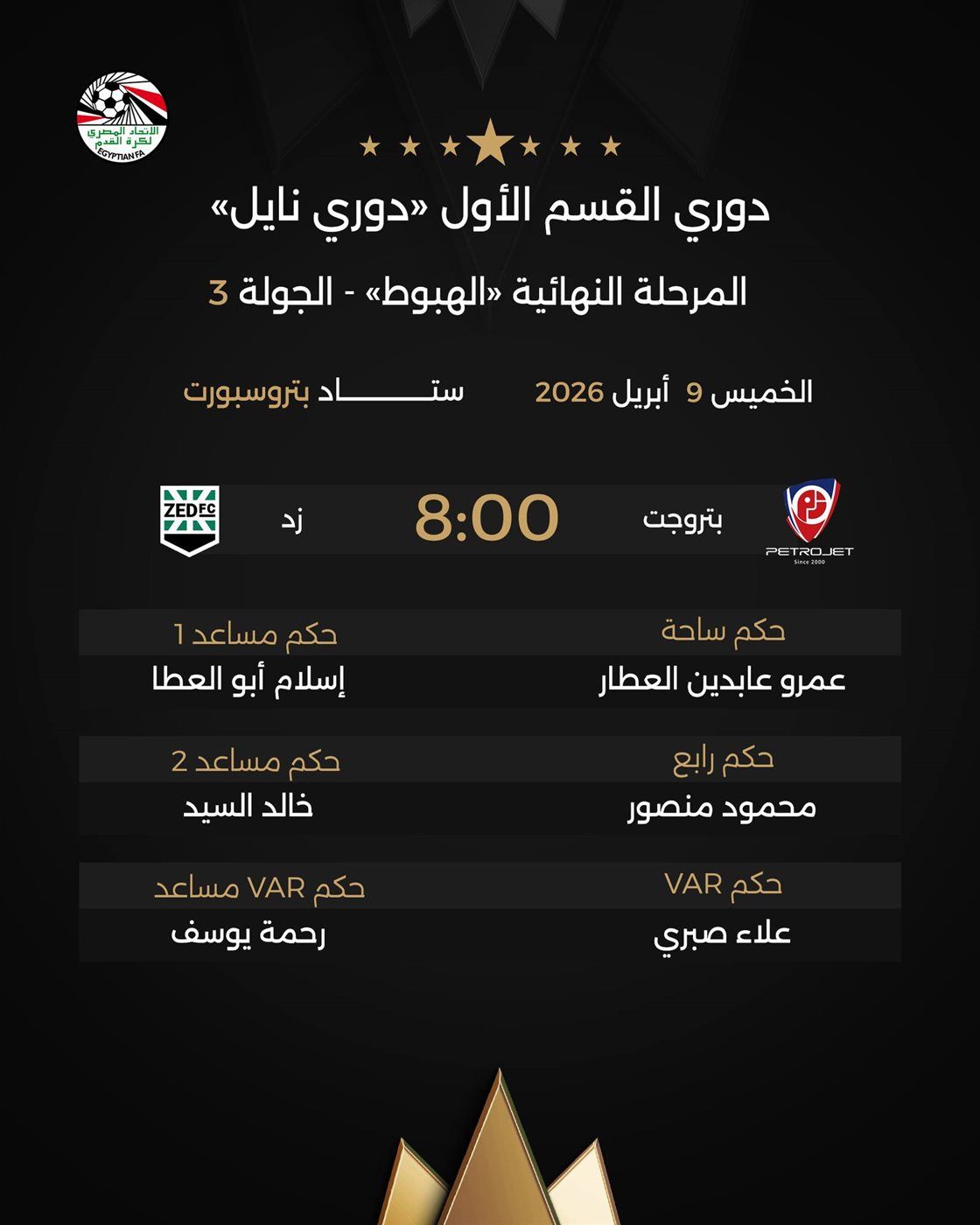 حكام مباراة بتروجت وزد في مجموعة الهبوط بدوري نايل