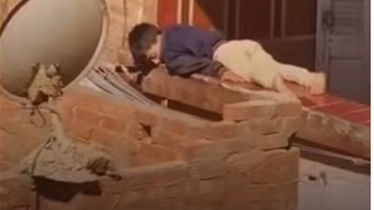 الفيديو وثّق لحظات صادمة، حيث بدا الطفل مستغرقًا في النوم على حافة مرتفعة دون أي وسائل حماية، ما عرّض حياته لخطر السقوط في أي لحظة.
