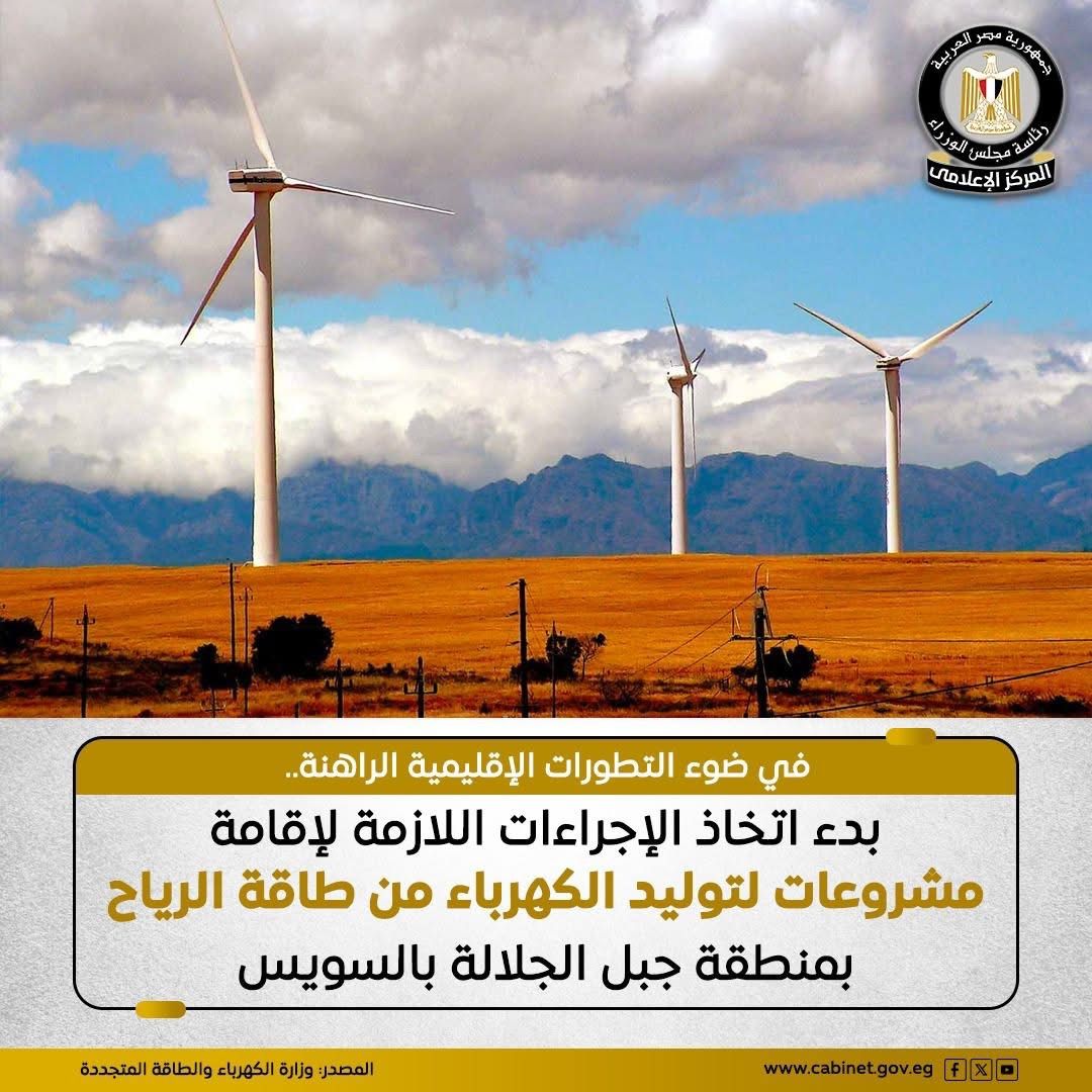 نشر المركز الإعلامي لمجلس الوزراء إنفوجرافًا يُسلّط الضوء على التحركات الحكومية لاستغلال منطقة جبل الجلالة بمحافظة السويس في إنتاج الكهرباء من طاقة الرياح، باعتبارها واحدة من أبرز المناطق الواعدة في هذا المجال.