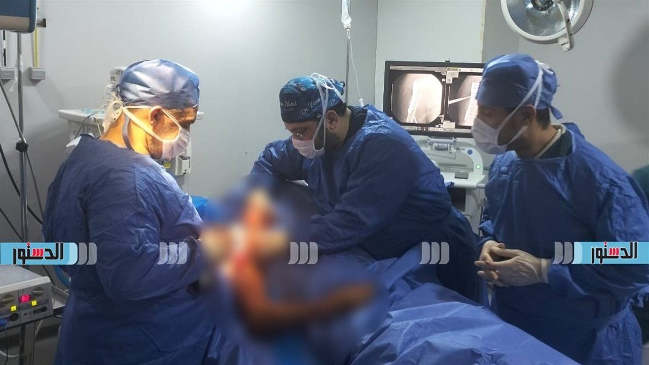 وقام الفريق الطبي بتثبيت كسر مفصل الكتف الأيمن باستخدام شريحة لوكد ومسامير مخصصة، كما تم تثبيت كسر عظمتي الساق اليمنى بواسطة مسمار نخاعي تشابكي، بالإضافة إلى تثبيت كسر مفصل الفخذ الأيسر باستخدام مسمار نخاعي مخصص.