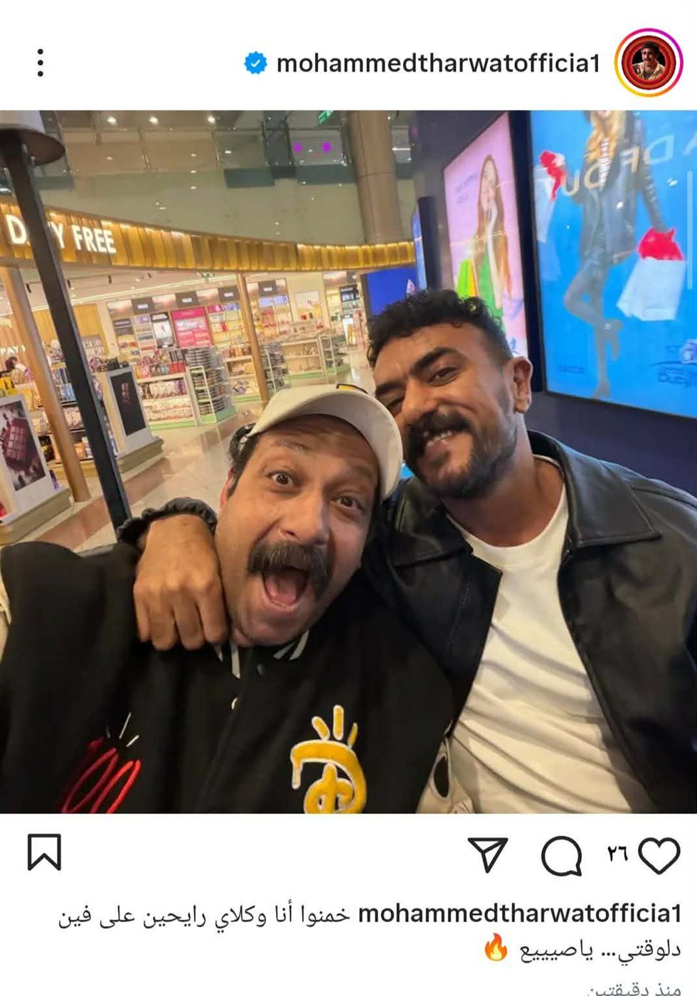 شارك الفنان الكوميدي محمد ثروت جمهوره ومتابعيه صورة جديدة عبر حساباته على مواقع التواصل الاجتماعي “إنستجرام”، ظهر فيها رفقة الفنان أحمد العوضي من داخل أحد المولات التجارية، ما أثار تفاعلًا كبيرًا من قبل المتابعين.