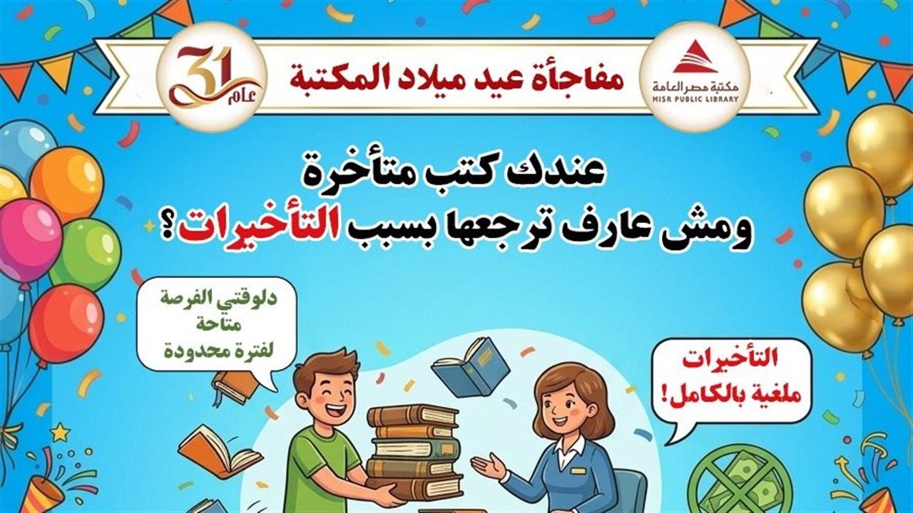 وتدعو مكتبة مصر العامة الرئيسية جميع الأعضاء إلى اغتنام هذه الفرصة، وإعادة الكتب، لتبدأ رحلة جديدة من القراءة والمعرفة مع مستفيدين جدد.