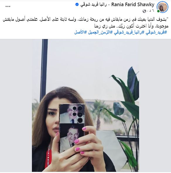 نشرت الفنانة رانيا فريد شوقي صورة سيلفي وعلى خلفية الموبايل صورة لوالدها الفنان الكبير فريد شوقي، في لفتة مؤثرة تعكس مدى ارتباطها العميق بذكراه.