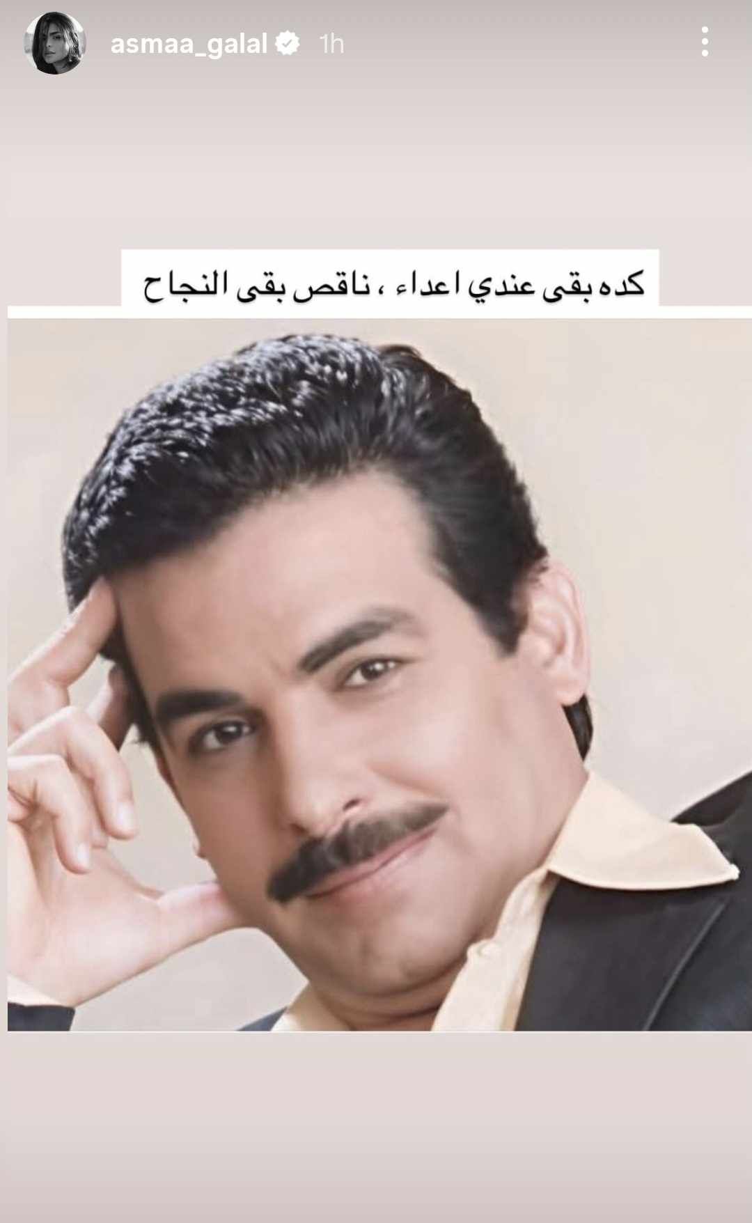 وكتبت أسماء جلال عبر خاصية “ستوري” على إنستجرام وفقا لما رصده موقع تحيا مصر: «كدا بقى عندي أعداء.. ناقص بقى النجاح».