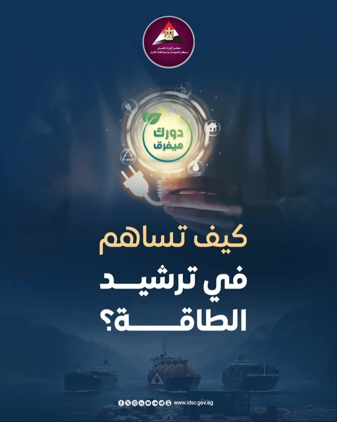 نشر مركز المعلومات ودعم اتخاذ القرار في مجلس الوزراء، مجموعة من الإنفوجرافيك بشأن كيفية التعامل مع الأزمة العالمية للطاقة ودور المواطنين في ترشيد الاستهلاك.