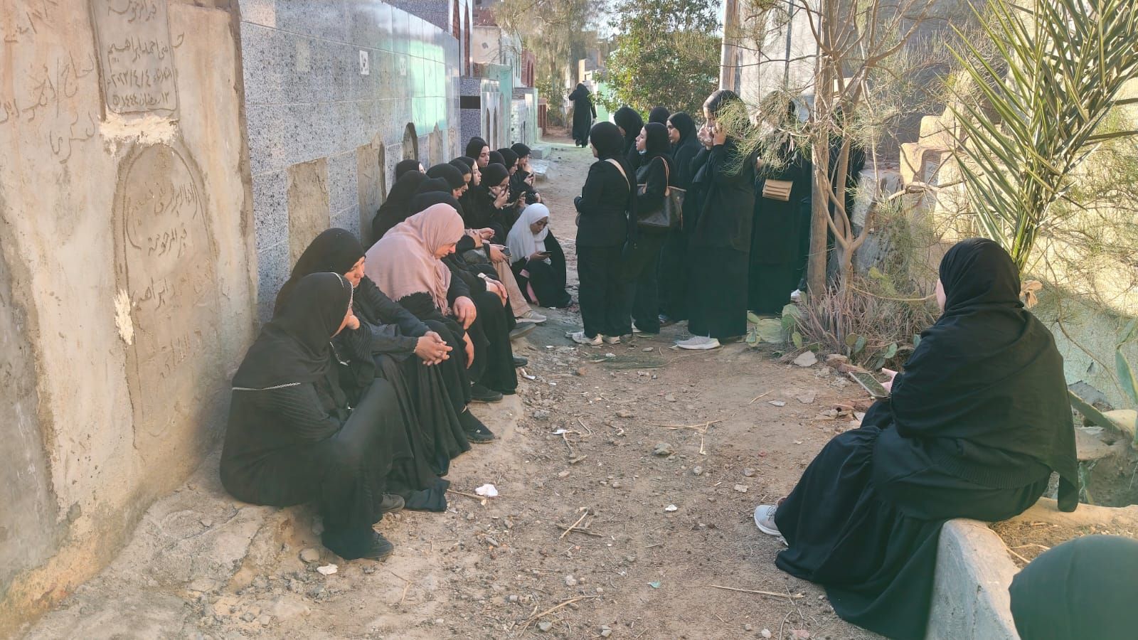أصدقاء عروس أولاد صقر بالشرقية يتجمعن أمام قبرها للدعاء وقراءة القرآن