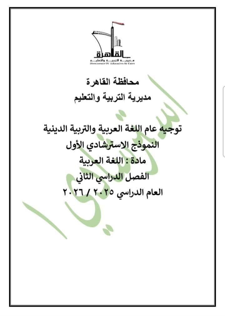 تفاصيل النموذج الاسترشادي الأول للغة العربية (الترم الثاني 2026)