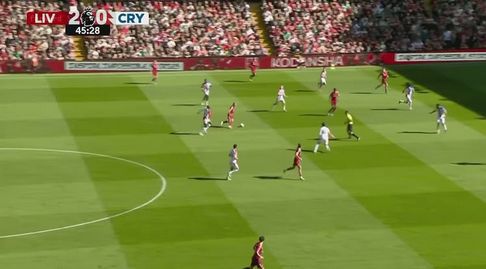 كما شهدت الدقائق الأخيرة من الشوط الأول لقطة مهمة، بعدما ارتكب دفاع ليفربول خطأ كاد يكلفه هدفًا، إلا أن حارس الفريق تألق وتصدى لمحاولة خطيرة من جانب هجوم كريستال بالاس، ليحافظ على نظافة شباكه.