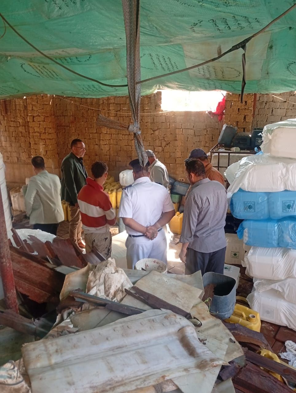 ضبط 15 طن أسمدة زراعية سائلة مجهولة المصدر بكيان مخالف لتعبئة المخصبات الزراعية بالمنوفية
