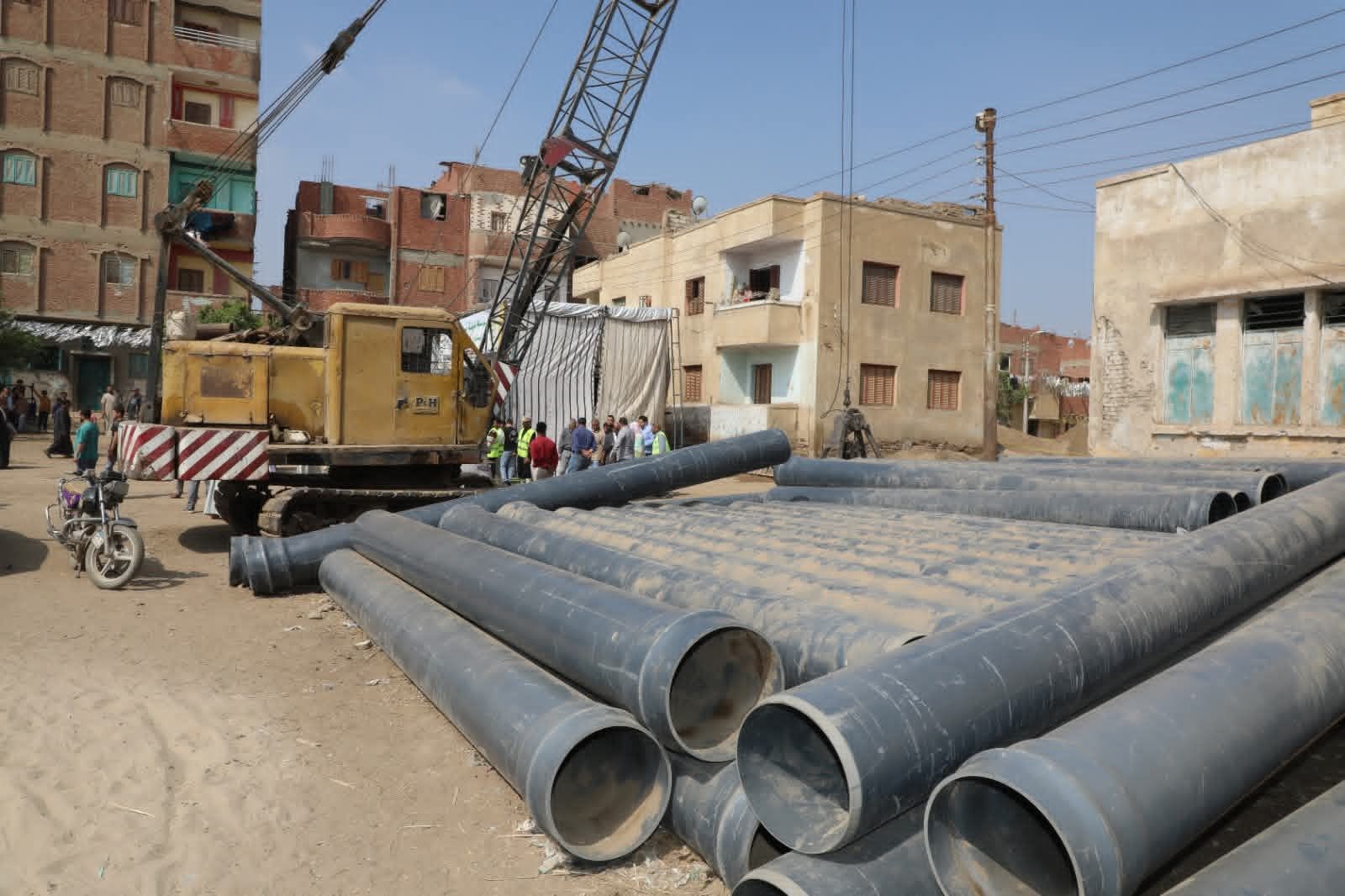 محافظ بني سويف يتفقد سير العمل بمشروع الصرف الصحي بقرية منهرو بنظام المشاركة المجتمعية