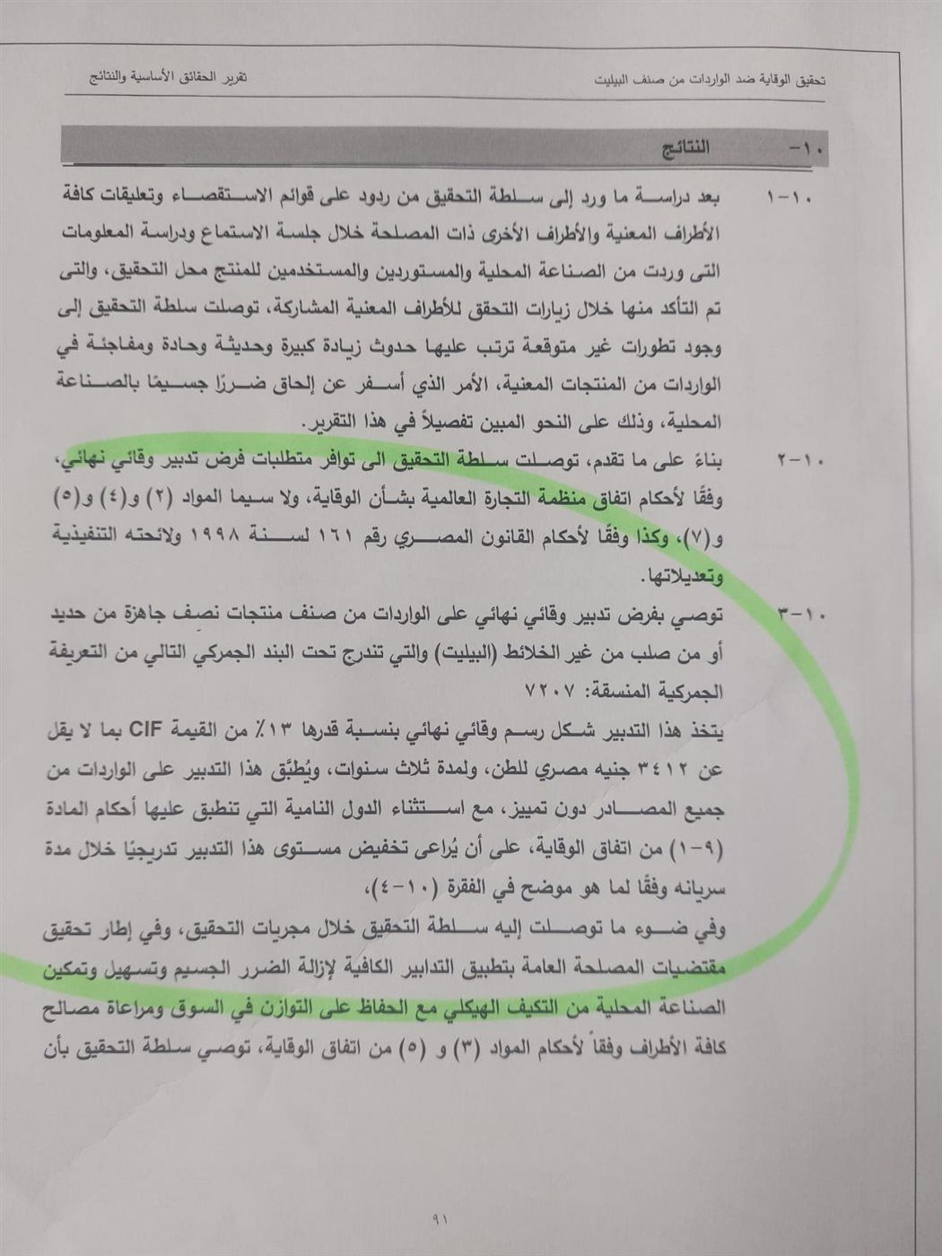 كانت سلطات التحقيق بقطاع المعالجات التجارية بوزارة الإستثمار والتجارة الخارجية قد أصدرت تقريرها الختامى بشأن قضية إغراق البيليت المستورد للسوق المصرى وإنفرد "الوفد" يوم 8 مارس الماضى بنشر توصيات سلطات التحقيق وكان ملخصها ،فرض رسوم إغراق نهائية نسبتها 13 % ولمدة 3 سنوات على البيليت المستورد وهو ما أشرنا إليه فى السطور الماضية .