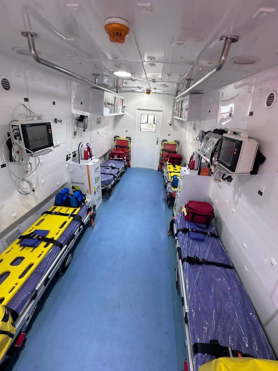 وتم تصميم اللنش ليكون قادراً على نقل 4 حالات مرضية في وقت واحد، وهو مجهز بأحدث ما توصلت إليه التكنولوجيا الطبية، وتشمل تجهيزاته: جهاز تنفس صناعي (Ventilator)، وجهازين لقياس العلامات الحيوية (Monitor)، وجهازين لمزيل الرجفان القلبي (AED)، وجهازين للشفط الكهربائي (Suction)، وجهازين للضغط، وجهازين للاستنشاق (Nebulizer)، و6 أسطوانات أكسجين سعة 10 لتر بضغط 200 بار، وصيدلية متكاملة للأدوية والمستلزمات الطبية، بالإضافة إلى حقائب تثبيت الكسور متعددة المقاسات.