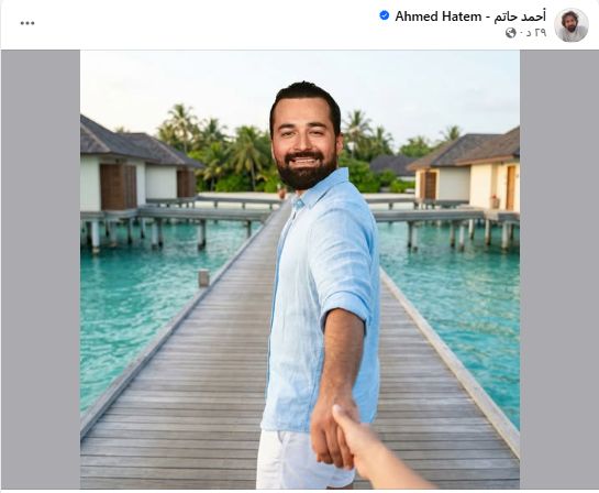 أثار الفنان أحمد حاتم حالة من الجدل على مواقع التواصل الاجتماعي بعد تداول صورة جديدة منسوبة له، تبين لاحقًا أنها معدلة باستخدام تقنيات الذكاء الاصطناعي، وظهر حاتم في الصورة وكأنه يقضي عطلة في جزر المالديف، ممسكًا بيد فتاة.