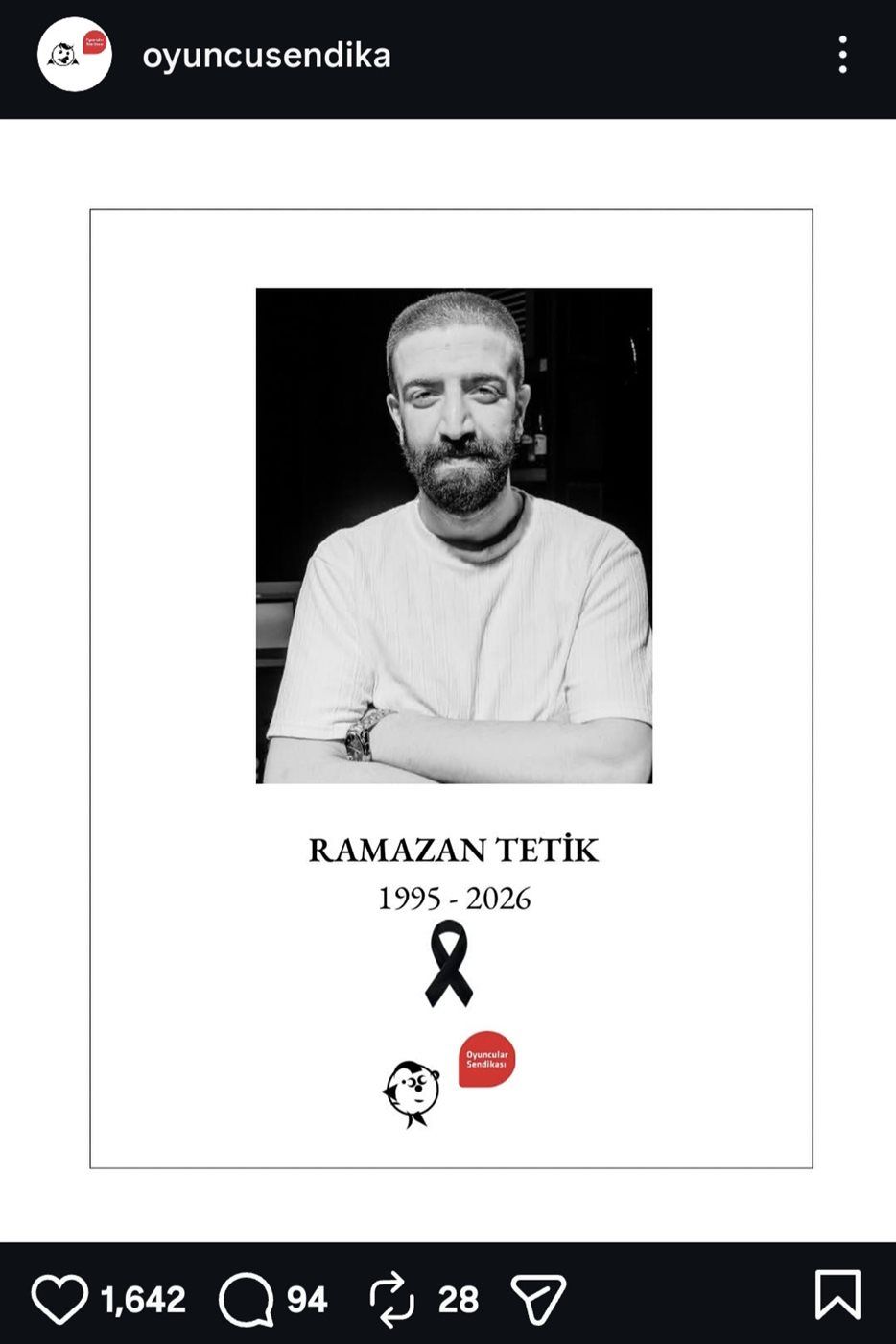 تصدر خبر وفاة الممثل الشاب رمضان تيتيك محركات البحث ومواقع التواصل الاجتماعي، بعد إعلان نقابة الممثلين بتركيا نبأ رحيله عبر حسابها الرسمي على إنستجرام.