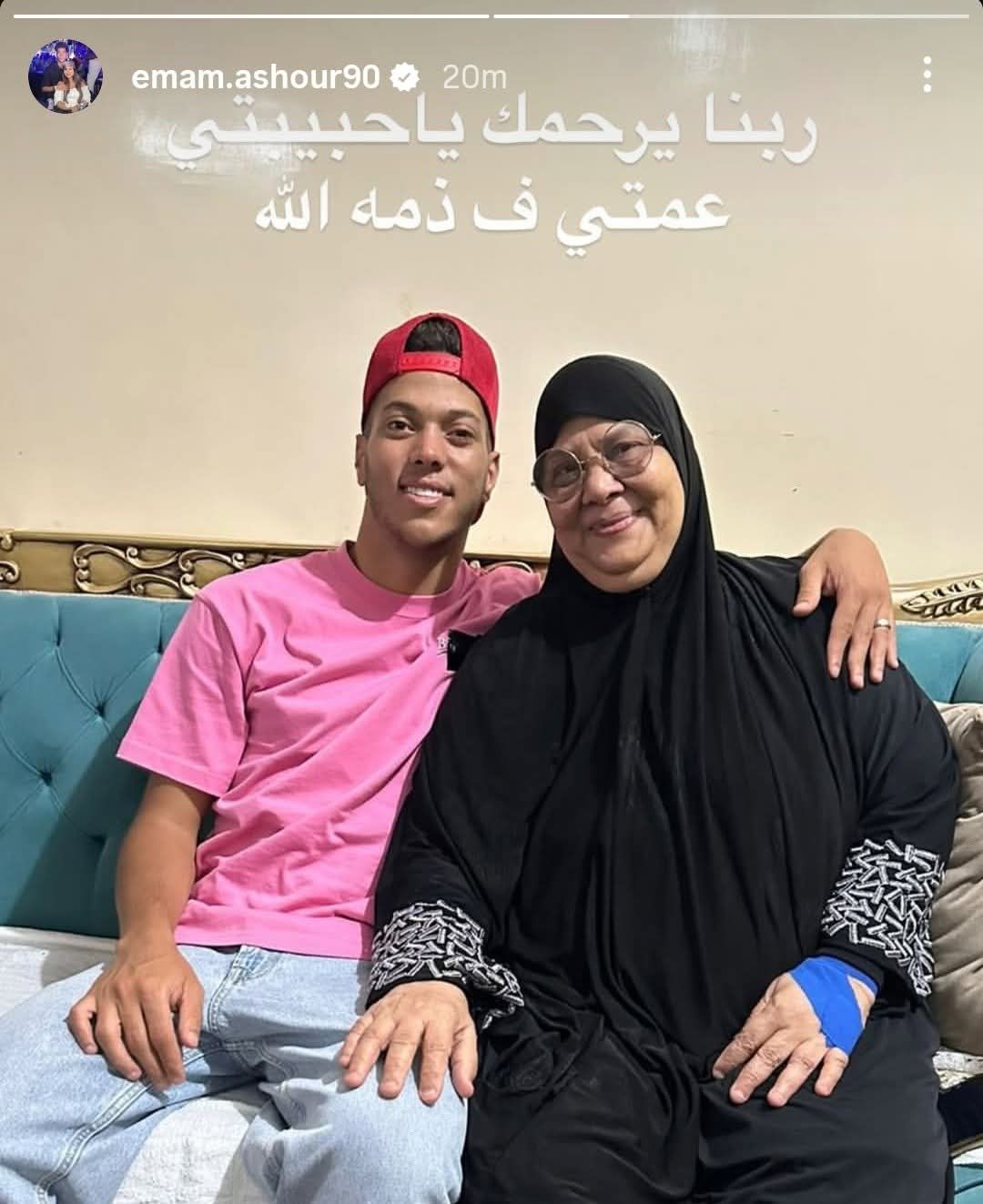 ونشر إمام عاشور لاعب الأهلي على إنستجرام، صورة تجمعه مع عمته، علق عليها: ربنا يرحمك يا حبيبتي.. عمتي في ذمة الله.
