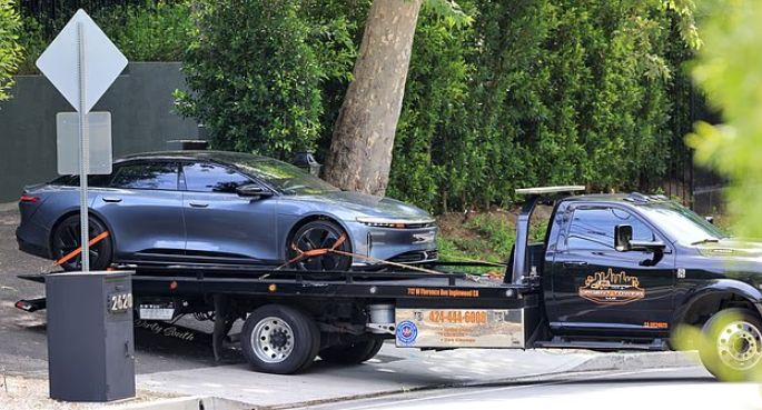 رصدت عدسات المصورين سيارة الممثل الفاخرة من طراز Lucid Air وهي تُنقل على متن شاحنة سحب، في واقعة بدت غير مألوفة لنجم بحجمه.