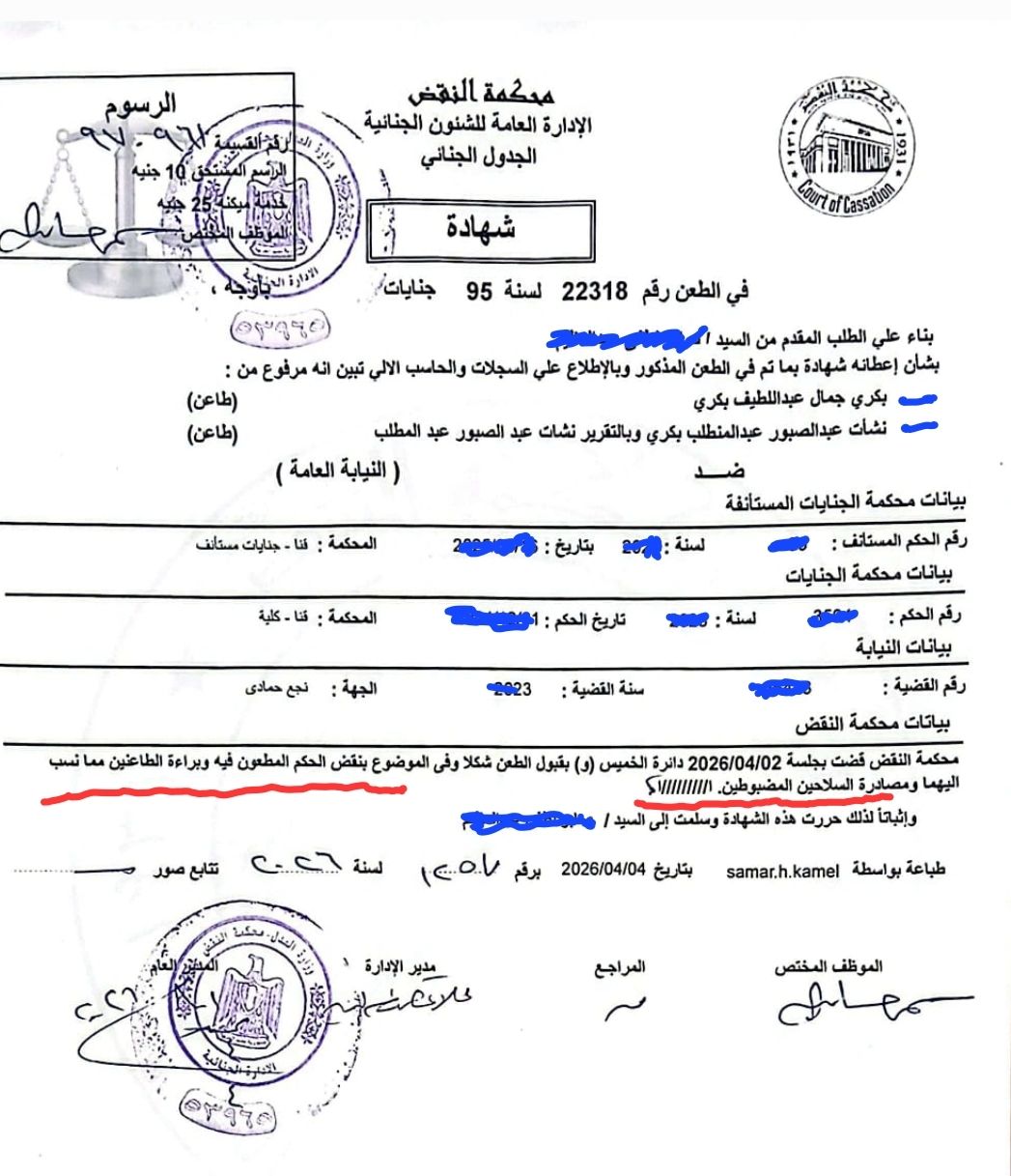 في تطور قضائي بارز أمام محكمة النقض المصرية، نجح المحامي الجنائي أشرف نبيل في تحقيق حكم بالبراءة لمتهمين في قضية مرتبطة بأحداث مذبحة أبو حزام، وذلك خلال جلسة الدائرة (الخميس "و") المنعقدة في 2 أبريل 2026، في الطعن رقم 22318 لسنة 95 قضائية، بعد أن كان قد صدر بحقهما حكم بالسجن المؤبد في اتهامات تتعلق بالقتل العمد مع سبق الإصرار والترصد المقترن بجناية أخرى، فضلاً عن حيازة أسلحة آلية وذخائر بدائرة مركز شرطة نجع حمادي.