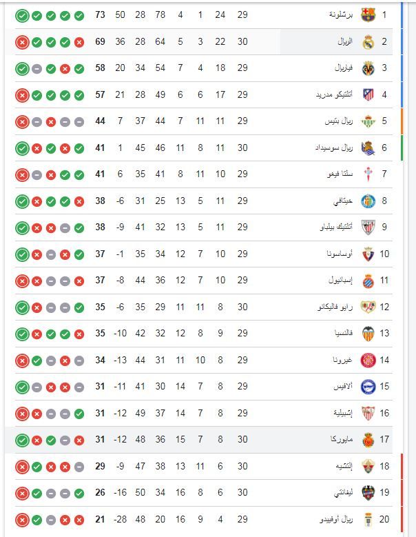بهذه الخسارة، منح ريال مدريد أفضلية لبرشلونة في الانفراد بصدارة ترتيب الدوري الإسباني لهذا الموسم بعدما كان قد اقترب من ملاحقة البلوجرانا خلال الأسابيع الماضية.