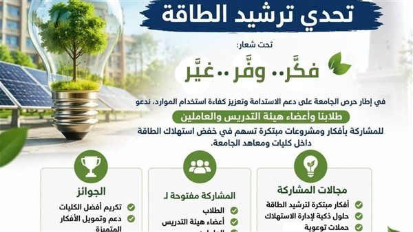 وأوضحت الدكتورة عفاف العوفي، نائب رئيس الجامعة لشئون خدمة المجتمع وتنمية البيئة، أن قطاع خدمة المجتمع وتنمية البيئة بالجامعة، قد أطلق هذه المبادرة استجابةً للتحديات المتزايدة في مجال الطاقة، لافتة أن المبادرة تهدف إلى ترشيد استهلاك الطاقة داخل الحرم الجامعي من خلال تبنّي أفكار مبتكرة وحلول عملية قابلة للتطبيق،