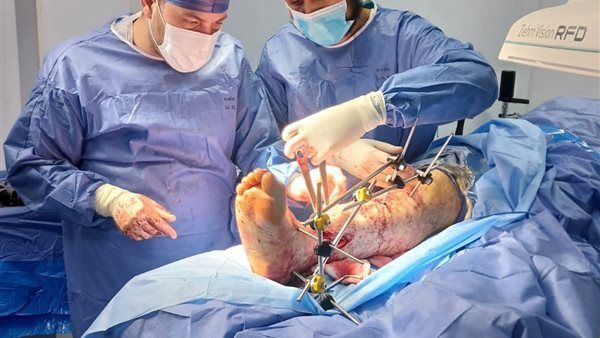 وعلى الفور، تم استقبال الحالة والتعامل معها بشكل عاجل، حيث خضع المريض لتدخل جراحي دقيق شمل تثبيت عظمة الشظية باستخدام شرائح ومسامير، إلى جانب تثبيت عظمة القصبة بمثبت خارجي ومسامير، وذلك لضمان استقرار العظام وتقليل المضاعفات المحتملة.