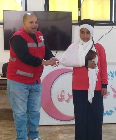 وحاضر بالندوه القائد احمد محمد عبدالباسط رئيس لجنه الإغاثه بالهلال الأحمر والقائد ايمن بربرى رئيس فرق الطوارئ، وبحضور علاء رشاد مدير الجمعيه تم التدريب بمقر قاعة التدريب بجمعيه الهلال الأحمر بالغردقة، لطلبه الزهرات والكشافه بالمدرسة.