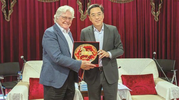 عقد الفنان حسين فهمي، رئيس مهرجان القاهرة السينمائى الدولي، جلسة عمل مع السيد فان يون، نائب رئيس التحرير فى مجموعة الصين للإعلام (CMG) ورئيس تحرير شبكة تليفزيون الصين الدولية (CGTN).