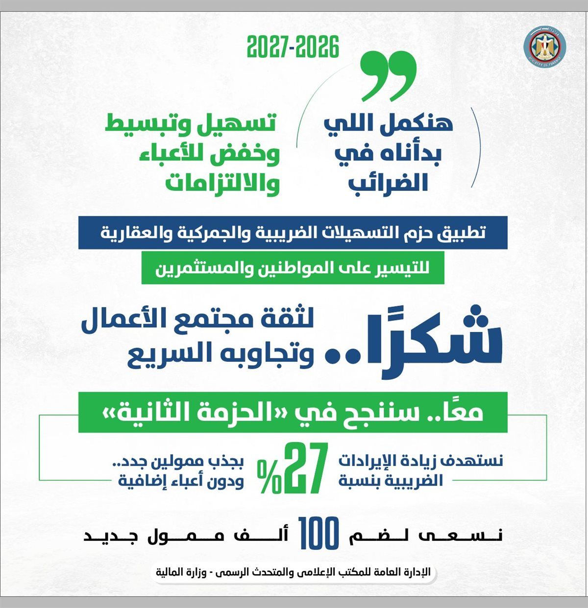 أكد أحمد كجوك وزير المالية، أن زيادة أجور العاملين بالدولة «معمول حسابها في الموازنة الجديدة»، وسيتم صرفها مع مرتبات يوليو المقبل، لافتًا إلى أن التكلفة الإجمالية للزيادة الأخيرة بالأجور تتجاوز ١٠٠ مليار جنيه وترفع مخصصات الأجور بالموازنة إلى ٨٢١ مليار جنيه.