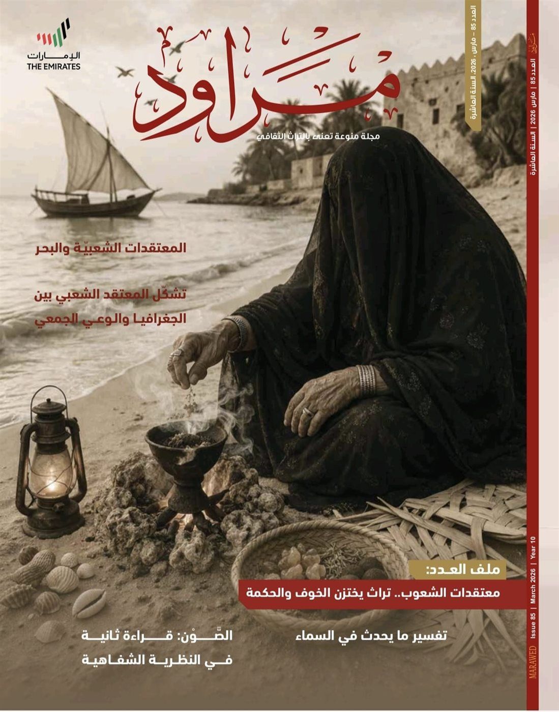 صدر حديثًا العدد (85) من مجلة «مراود» التراثية، التي يصدرها معهد الشارقة للتراث بالامارات العربية، حافلًا بملف رئيسي يتناول «معتقدات الشعوب» بوصفها أحد أكثر مكونات التراث الشعبي تعقيدًا وثراءً.