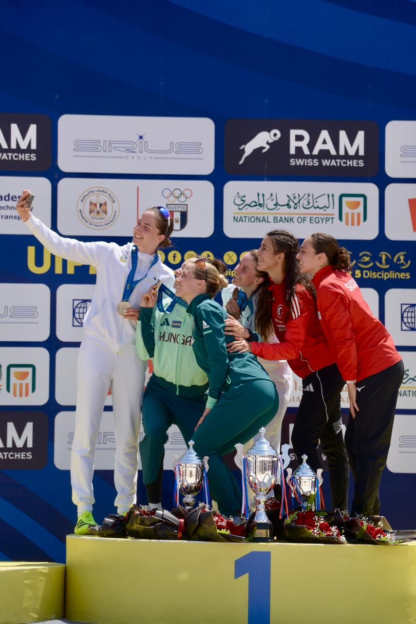 وعقب انتهاء المنافسات أقيمت مراسم تتويج اللاعبات الفائزات ، وقام بتسليم الميداليات روب ستول رئيس الاتحاد الدولي للخماسي الحديث ، والمهندس شريف العريان نائب رئيس الاتحاد الدولي ورئيس الاتحاد المصري للخماسي الحديث ، ودكتور كلاوس شورمان الرئيس الشرفي للاتحاد الدولي ، وباري تومبكينز عضو المكتب التنفيذي للاتحاد الدولي ، والنائب إسماعيل موسى رئيس اتحاد شمال أفريقيا للخماسي الحديث ، والبطل الأولمبي المصري أحمد أسامة الجندي رئيس لجنة اللاعبين وعضو اللجنة الأولمبية المصرية، ، و دكتور ستيفاني كوك عضو اللجنة الطبية بالاتحاد الدولي للخماسي الحديث ود. أحمد ضاهر نائب وزير التربية والتعليم.