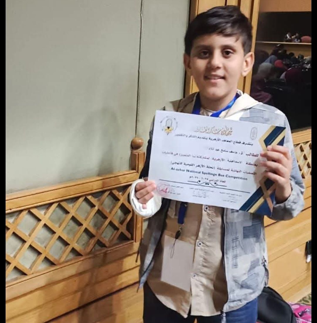 يوسف على رفعت – الصف الخامس الابتدائي – معهد الشهيد أبو بكر عادل – إدارة أبو صوير .