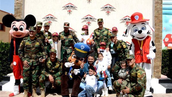 القادة والضباط ، كما تم تنفيذ عدد من الأنشطة الترفيهية والرياضية التى رسمت البهجة على وجوه الأطفال وتوزيع عدد من الهدايا التذكارية عليهم بما يعكس روح المحبة والتلاحم بين أبناء الوطن .