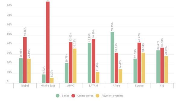 تكشف أرقام التقرير عن حقيقة صادمة تخص مستخدمي الإنترنت في منطقتنا؛ إذ تتركز نسبة 85.5% من عمليات التصيد الاحتيالي المالي في الشرق الأوسط على منصات التجارة الإلكترونية، وهو رقم يتجاوز بمراحل المتوسطات العالمية.