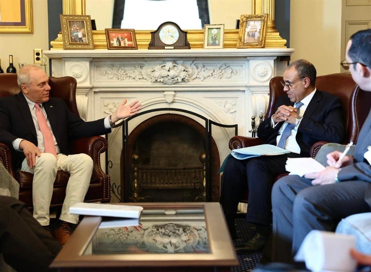 التقى د. بدر عبد العاطي وزير الخارجية والتعاون الدولي والمصريين بالخارج، يوم الثلاثاء ١٤ مارس، بالنائب "ستيف سكاليس" زعيم الأغلبية الجمهورية بمجلس النواب الأمريكي، وذلك في إطار لقاءاته مع قيادات الكونجرس خلال زيارته إلى واشنطن.