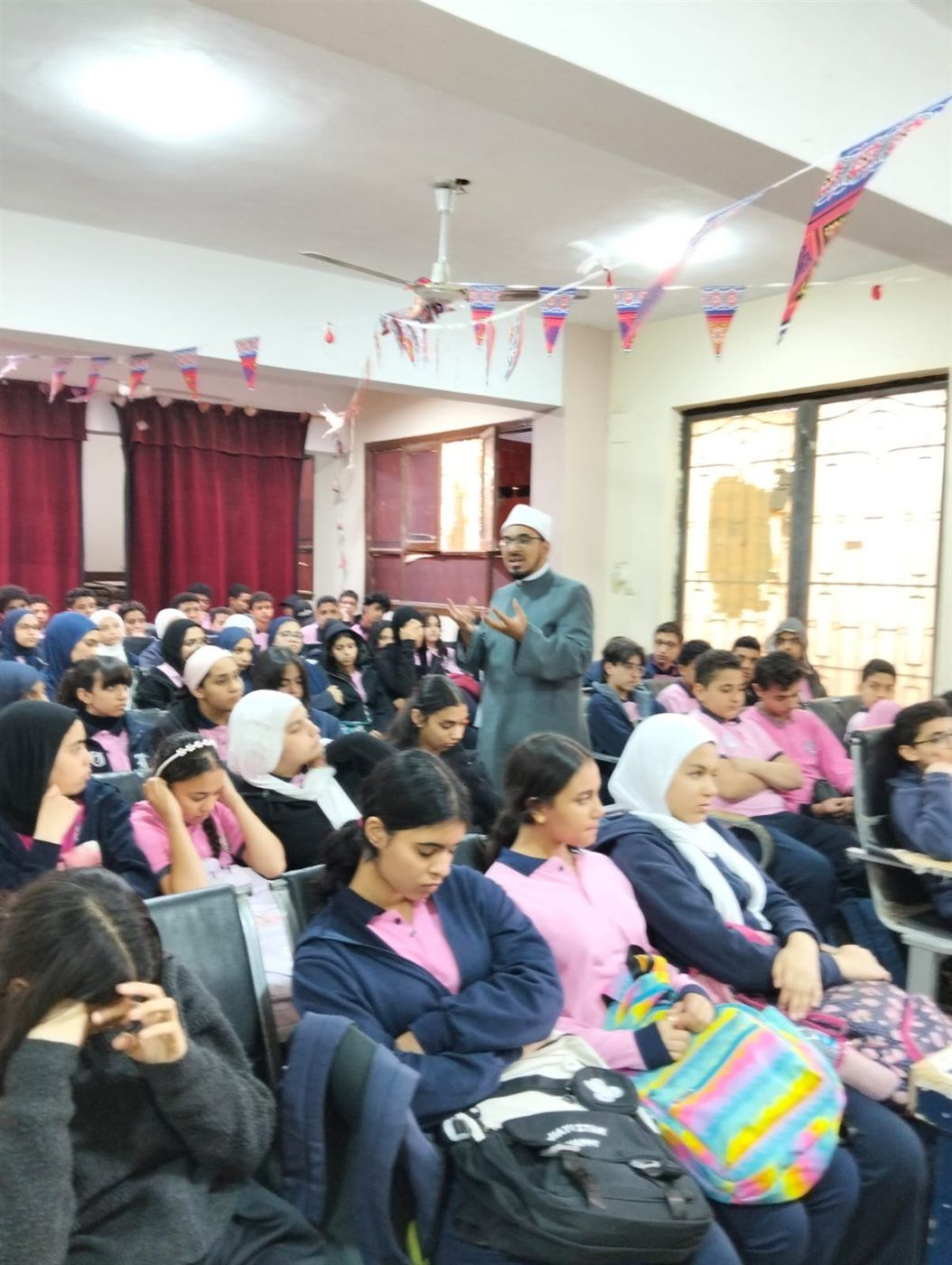 حاضر في الندوة عبد الرحمن محمد ابو جمره مدرس وإمام وخطيب بمديرية أوقاف الجيزة، وبحضور حنان سيف عضو بالمشاركة المجتمعية بمديرية التربية والتعليم، وشعبان الكومى مدير المدرسة.