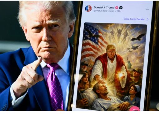 يأتى الفيديو المنشور من قبل إحدى السفارات الإيرانية كرد على الفيديو الذى تشاركه ترامب مشبها نفسه بالسيد المسيح الذى يشفى المرضى، ثم ما أن هاجمه الكثيرون حتى غيّر الرئيس الأمريكى مقصده وقال أنه ظن تشبيه نفسه بأطباء الصليب الأحمر الذى يداوى المرضى، معلقا أنه بالفعل يداوى ألاف المرضى !، ثم إنتقده بابا الفاتيكان على أفعاله التى ترتكبها الولايات المتحدة بأمره فى إيران ولبنان، جاءت إنتقادات البابا أثناء وجوده فى الجزائر يوم الإثنين الماضى، إلا أن ترامب نشر تعليقا يصف فيه البابا “بالضعيف” أمام ما تتطلبه السياسة الخارجية ومايحدث فى العالم من جرائم، وهو ما دفع البابا أن يصرح بأنه لن يخاف من ترامب أو إدارته وقال منذ ساعات “ ويل لمن يستغلون الله لأغراض الحرب”، ثم نشر ترامب فيديو أخر وهو يقف ويحتضنه المسيح أمام ميكروفون وفى خلفيته العلم الأمريكى.