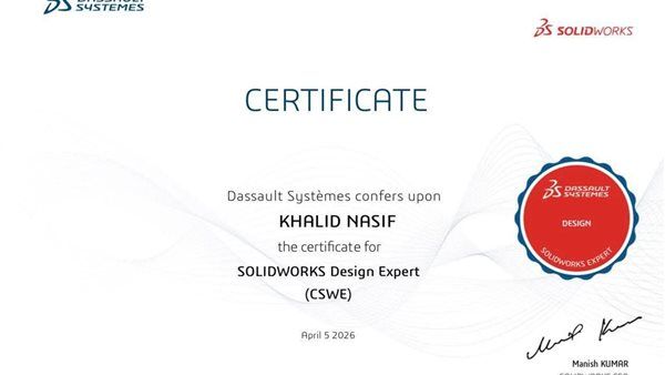 وتُمنح هذه الشهادة للمتخصصين الذين يجتازون اختبارات متقدمة ومعقدة في النمذجة ثلاثية الأبعاد، وإدارة التجميعات الهندسية عالية التعقيد، بما يعكس مستوى احترافيًا متقدمًا يتوافق مع معايير الصناعة العالمية.