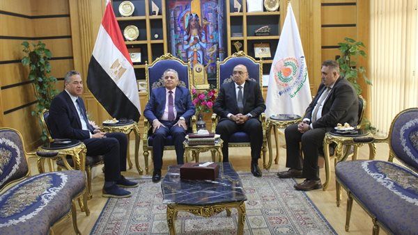 استقبل الدكتور شريف خاطر رئيس جامعة المنصورة، اليوم، الدكتور أشرف محمد حنيجل رئيس جامعة السويس، خلال زيارته للجامعة بوجود الدكتور محمد عطية البيومي نائب رئيس الجامعة .