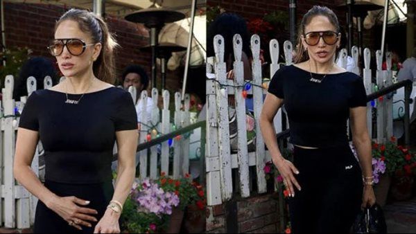 اختارت جينيفر لوبيز إطلالة سوداء بالكامل أبرزت قوامها الرشيق بأسلوب عصري واضح.