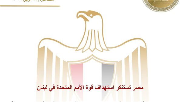 تعرب جمهورية مصر العربية عن استنكارها للهجوم الذي استهدف قوة الأمم المتحدة المؤقتة في لبنان "اليونيفيل" والذي وقع في جنوب لبنان اليوم السبت ١٨ أبريل وأسفر عن مقتل جندي فرنسي وإصابة آخرين.