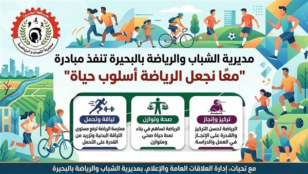 تواصل مديرية الشباب والرياضة بالبحيرة من خلال إدارة العلاقات العامة والإعلام بالمديرية ،فعاليات مبادرة "معًا نجعل الرياضة أسلوب حياة"، وذلك في إطار حرص الدولة على تعزيز ثقافة الممارسة الرياضية وغرس أنماط الحياة الصحية في المجتمع.