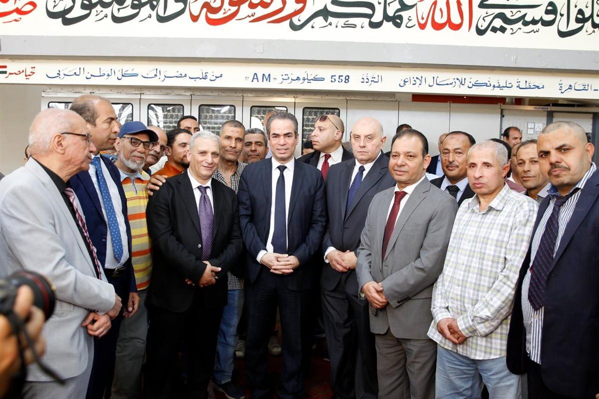 التقي المسلماني المهندسين والفنيين والعمال في مركز إرسال أبي زعبل ، كما تفقد سير العمل في محطات البث القديمة والجديدة.
