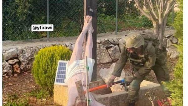 أثارت صورة أحد الجنود الإسرائيليين وهو يهشم تمثال للسيد المسيح فى جنوب لبنان الجدل الشديد على صفحات السوشيال ميديا، مما أحرج ليس فقط جيش الإحتلال ولكن رئيس الوزراء بنيامين نتنياهو كذلك، والذى خرج بنفسه فى خطاب اليوم ليقول أن الأمر محل تحقيق وأن دولة الإحتلال هى الدولة الوحيدة التى يعيش فيها كل أصحاب الأديان فى سلام فى الشرق الأوسط حسب قوله، ودس نتنياهو السم فى العسل بقوله “ فى الوقت الذى يتم فيه ذبح المسيحيين فى سوريا ولبنان بأيادى المسلمين، فإنهم يعيشون حياة مزدهرة فى إسرائيل"!!.